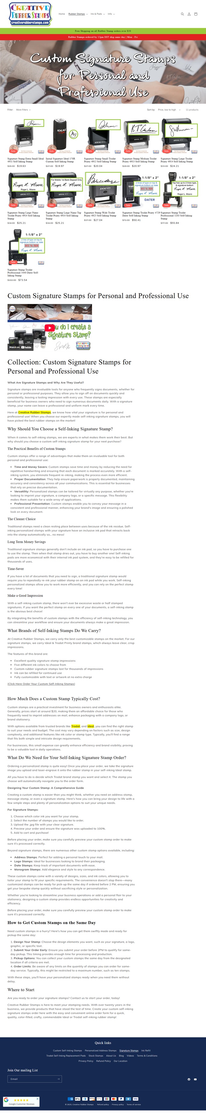 We create custom signature stamps for individuals who frequently need to sign documents. Our high-quality self-inking stamps feature Trodat and Ideal brands, ensuring durability and convenience.signature stamps for checks